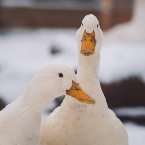 Ahoj, člověče! Dovol nám se představit. Jsme Ríša s Josefínkou a přicházíme z velké dálky z kruté země zvané Velkochov. Prý jsme takový Romeo a Julie. Nejsem si tedy úplně jistý, kdo to je. My dva se máme moc rádi a celý život žijeme spolu. Místní kachní starousedlíci nás hned přijali mezi sebe. Běháme si po obrovském trávníčku plném lahodných broučků Jsme tady tááák šťastní, že to snad ani víc nejde. Věřím, že už je to napořád!